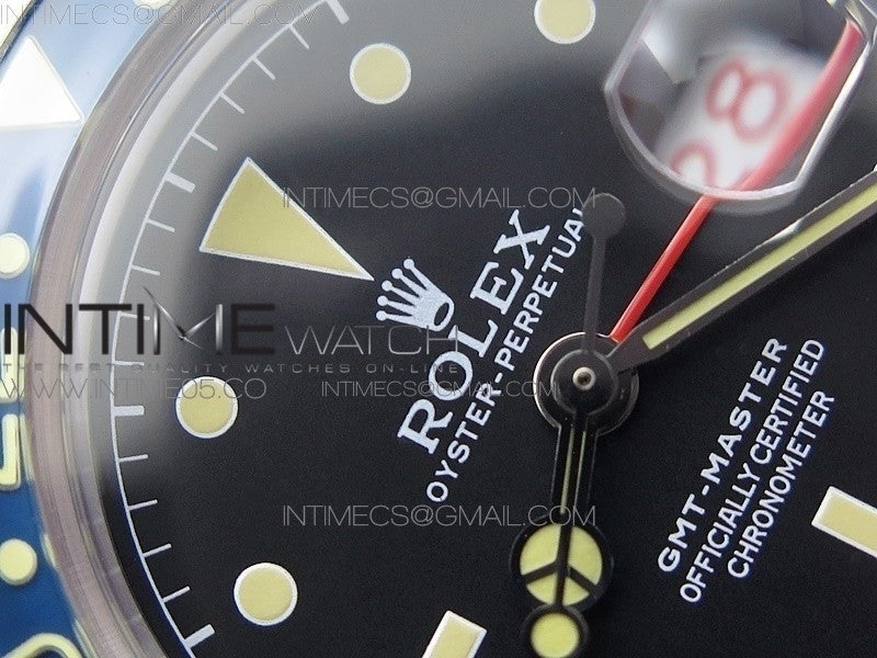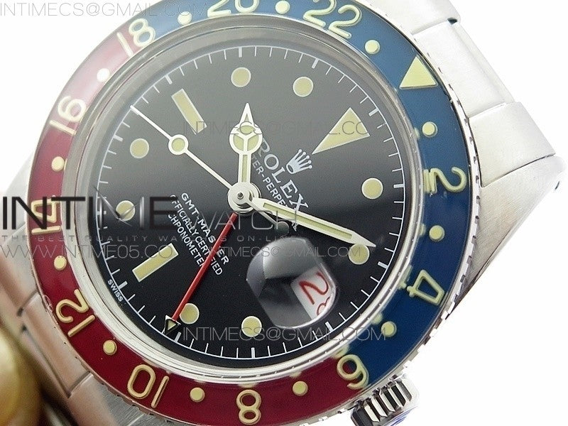 Vintage GMT Master 6542 Blue/Red Bezel B12 Black Dial on SS Bracelet A2836