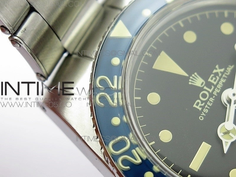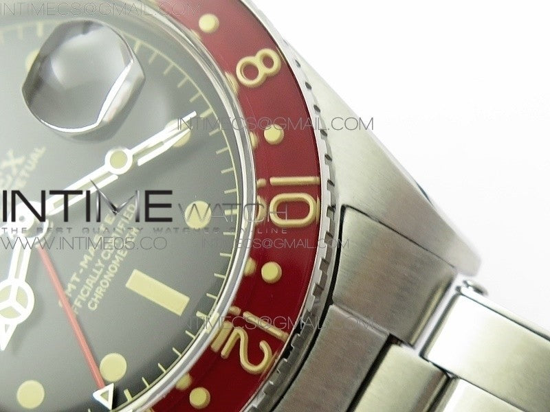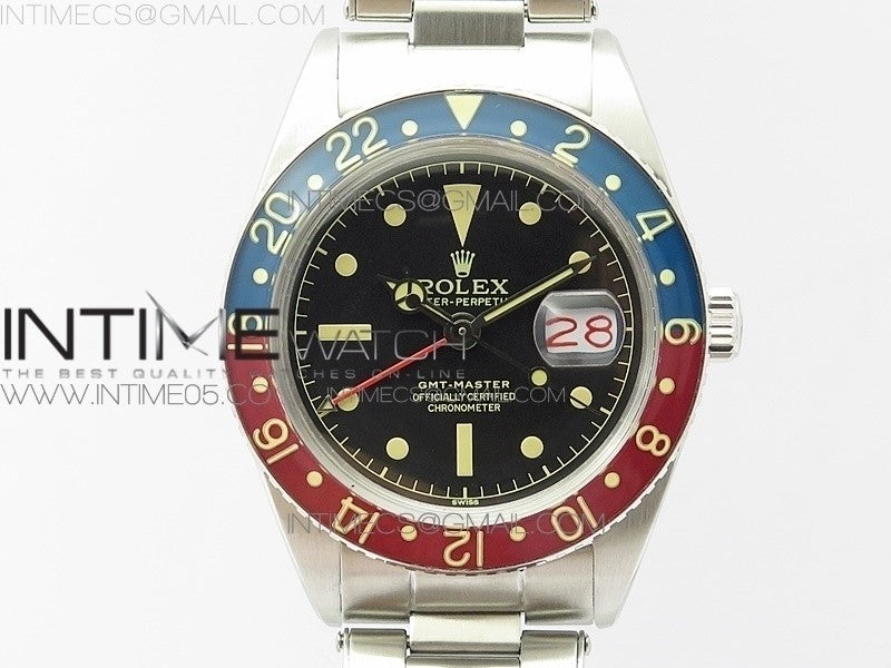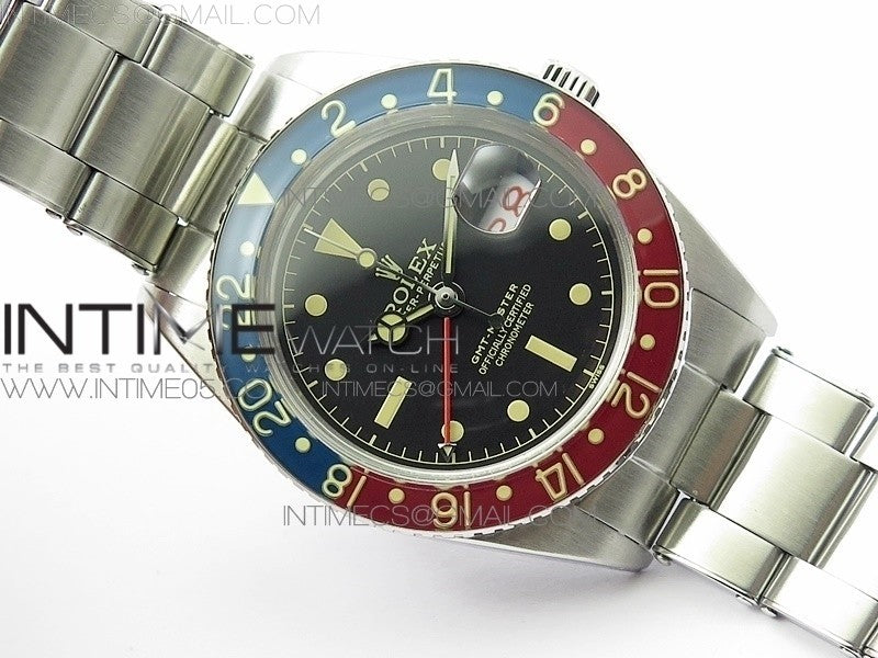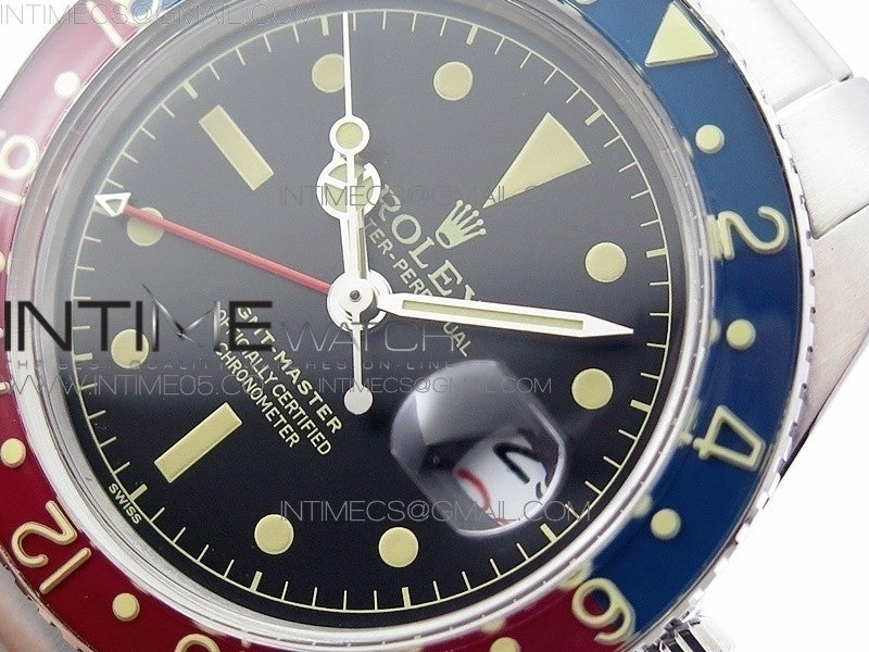 Vintage GMT Master 6542 Blue/Red Bezel B12 Black Dial Style03 on SS Bracelet A2836