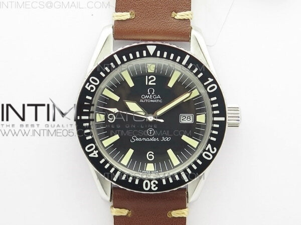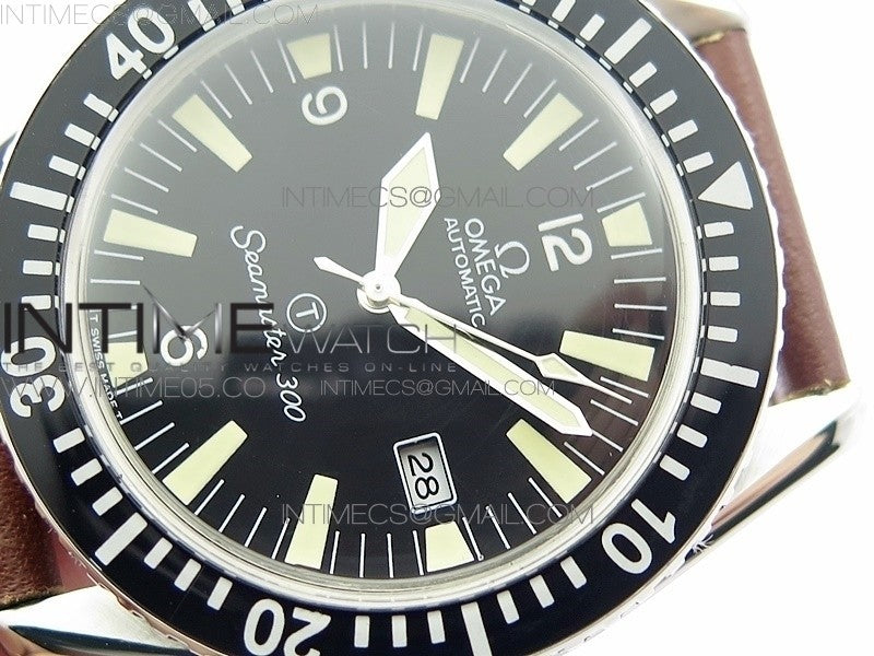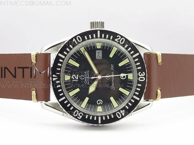 Vintage Seamaster 300 Date T SS B12 Black Dial On Brown Leather Strap A-2836 (Free Nylon Strap)