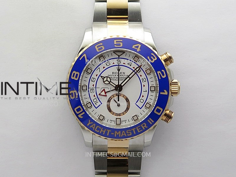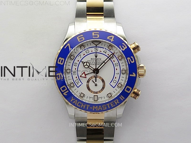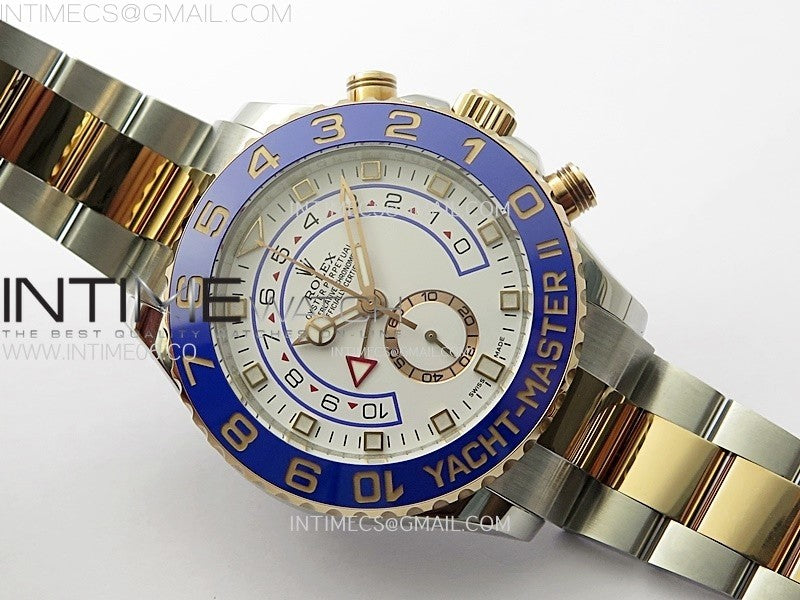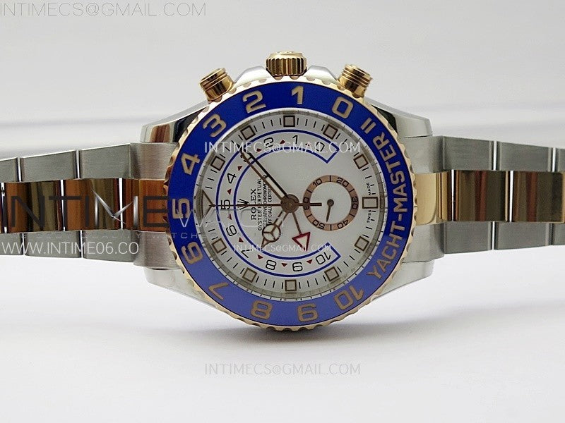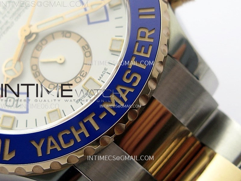 YachtMaster II 116681 Blue Ceramic Bezel SS/RG KF 1:1 Best Edition White Dial on Bracelet A7750
